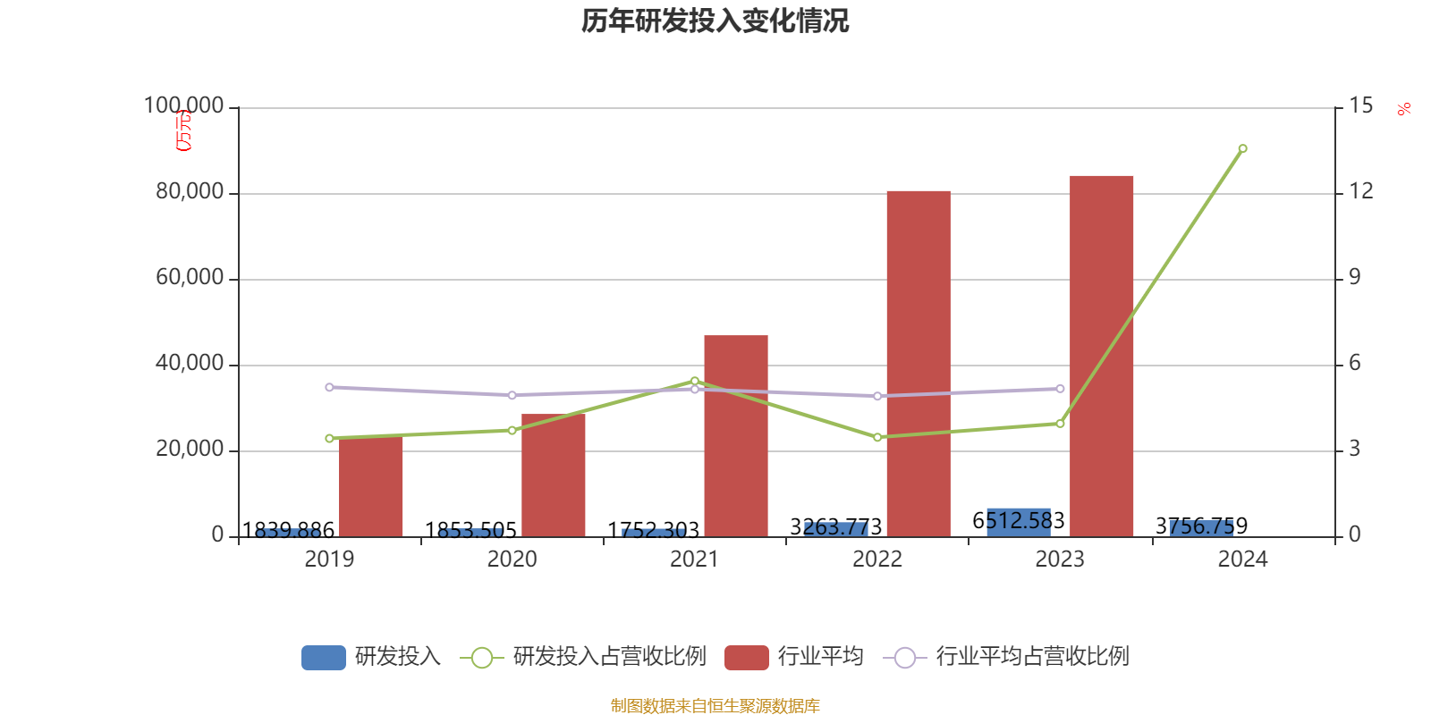 2024年全年,公司研发投入金额为3756.76万元,同比下降42.32%;研发投入占营业收入比例为13.56%,相比上年同期上升9.62个百分点。此外,公司全年研发投入资本化率为0%。