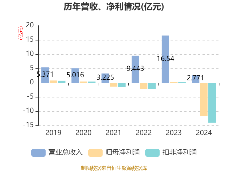 中证智能财讯沐邦高科(603398)4月30日披露2024年年度报告。2024年,公司实现营业总收入2.77亿元,同比下降83.24%;归母净利润亏损11.62亿元,上年同期盈利2828.83万元;扣非净利润亏损14.07亿元,上年同期盈利1068.33万元;经营活动产生的现金流量净额为-2.17亿元,上年同期为3.9亿元;报告期内,沐邦高科基本每股收益为-2.78元,加权平均净资产收益率为-87.27%。